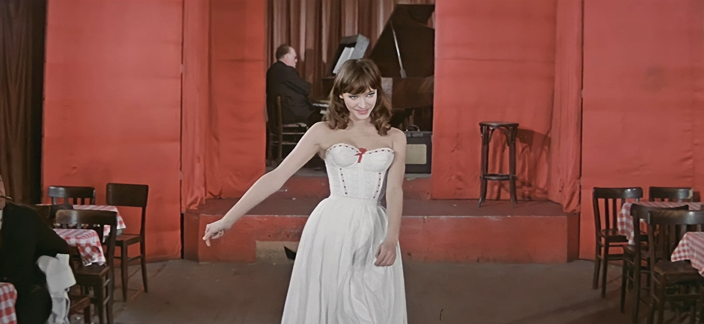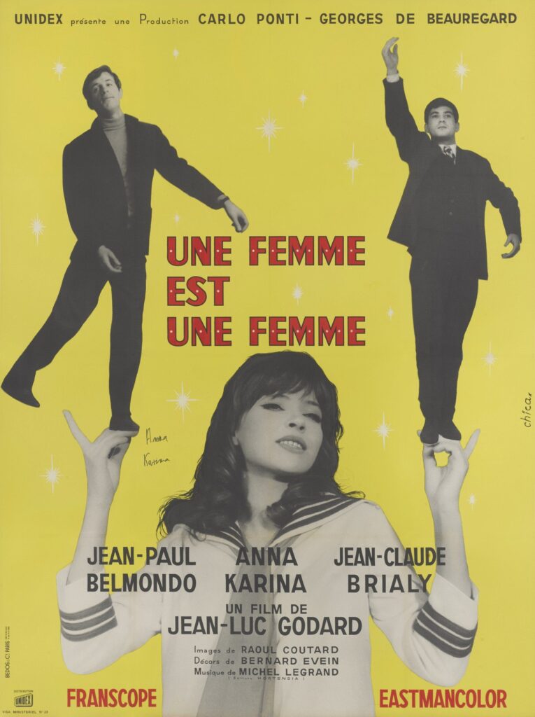 Een “neorealistische musical”—zo noemde Jean-Luc Godard zijn sprankelende Une femme est une femme (1961), en precies die speelse tegenstrijdigheid bepaalt de charme van de film. Anna Karina schittert als Angela, een nachtclubdanseres die een kind wil met haar terughoudende partner Émile (Jean-Claude Brialy), terwijl Jean-Paul Belmondo als zijn beste vriend Alfred het spel verder op scherp zet.
